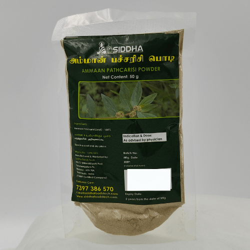 Traditionally, Amman Pacharisi has been used to treat respiratory conditions such as asthma, bronchitis, and cough. Its anti-inflammatory properties help reduce airway inflammation, making it easier to breathe. The powder also helps loosen mucus, making it easier to expel, and provides relief from congestion and respiratory discomfort.