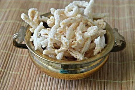 Generally eaten by people in Tamil Nadu, this crispy vadam is prepared and kept in air-tight containers and used for a whole year. It is a perfect accompaniment for many South Indian gravies. Every Tamil house generally prepares these vadam duing the “Maasi – February mid to March mid, it is a tradition followed in many south Indian houses.
